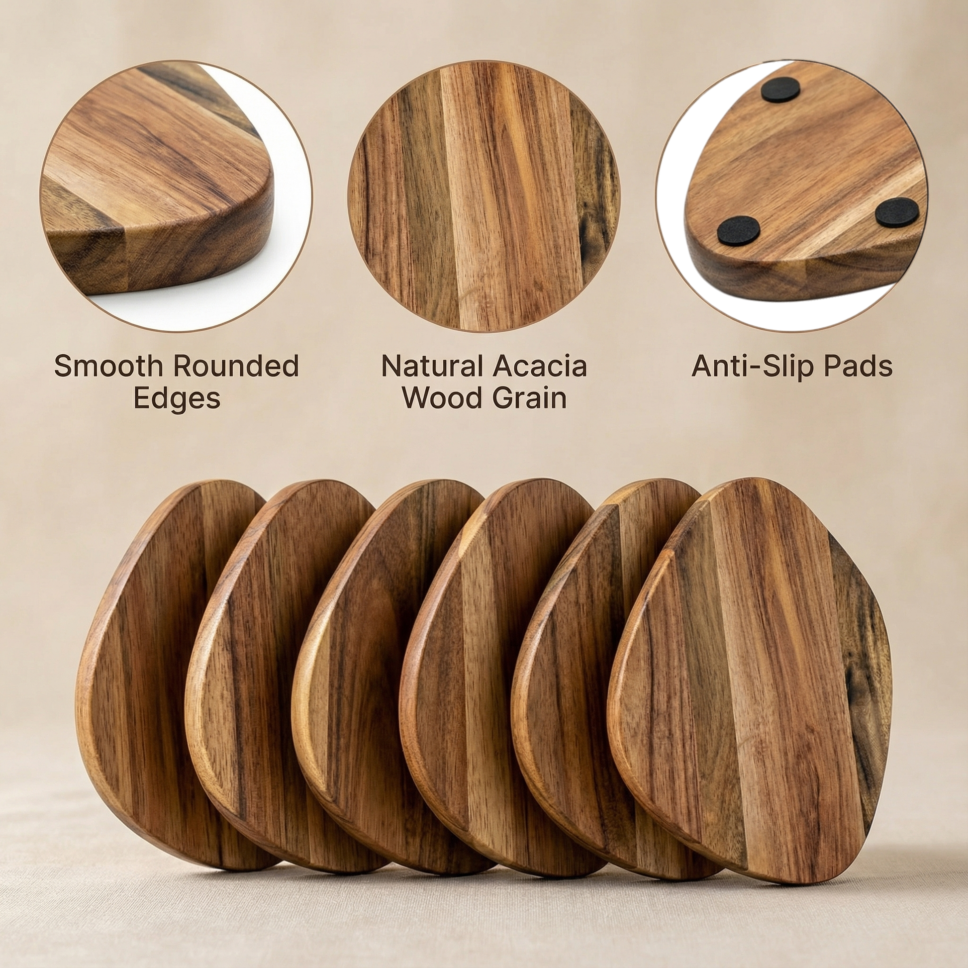 • Premium Acacia Wood: Durable hardwood with rich natural grain variations and a smooth, food-safe finish.