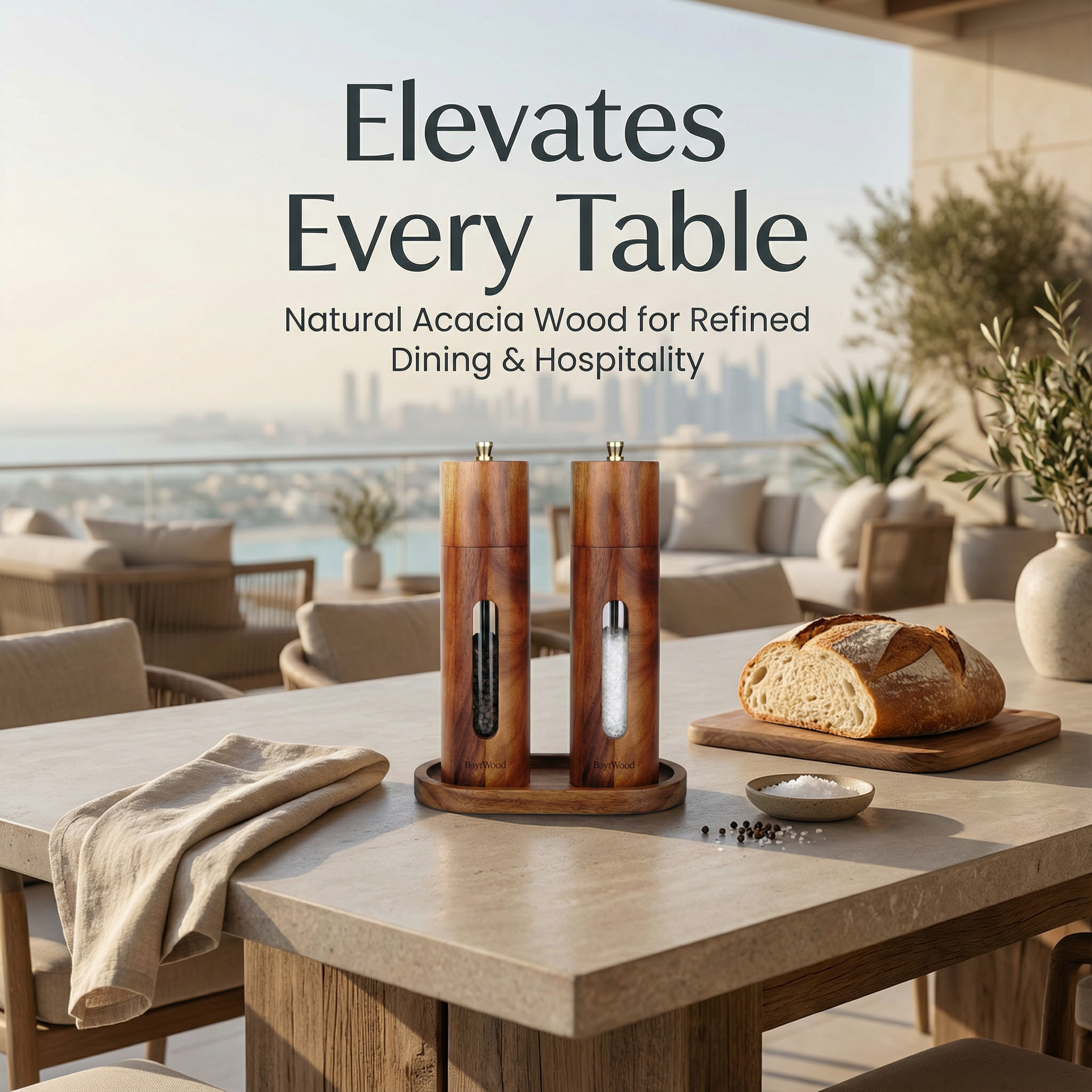 The Forte Grinder Set is a refined tabletop essential crafted from solid acacia wood. Designed for modern dining, cafés, and hospitality spaces, it combines timeless materials with precise manual performance—elevating both everyday meals and formal table settings.